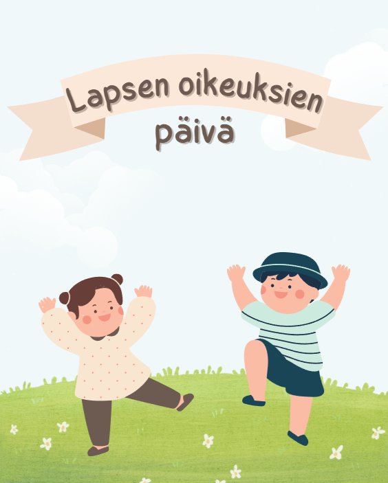 Kansainvälistä lapsen oikeuksien päivää (eng. World Children’s Day) on vietetty jo 70-vuotta ja sen tarkoituksena on ollut edistää lasten asemaa ja hyvinvointia kaikkialla maailmassa. Lasten oikeuksien päivää on vietetty vuodesta 1954 lähtien, kun YK:n yleiskokouksessa ensimmäisen kerran suositeltiin kaikille maailman valtioille vietettäväksi lasten päivää. Virallisena lasten oikeuksien päivänä pidetään 20. marraskuuta, sillä tuona päivänä vuonna 1959 YK:n yleiskokous hyväksyi lapsen oikeuksien julistuksen. Kuitenkin vasta 30 vuotta myöhemmin vuonna 1989, hyväksyttiin lapsen oikeuksien sopimus, jonka Suomi ratifioi vuonna 1991. Lapsen oikeuksien sopimus onkin maailman laajimmin hyväksytty YK:n ihmisoikeussopimus. Voit lukea lisää tietoa Lapsen oikeuksien sopimuksesta täältä: https://www.unicef.fi/tyomme/lapsen-oikeudet/lapsen-oikeuksien-sopimus/lapsen-oikeuksien-sopimus-tiivistettyna/